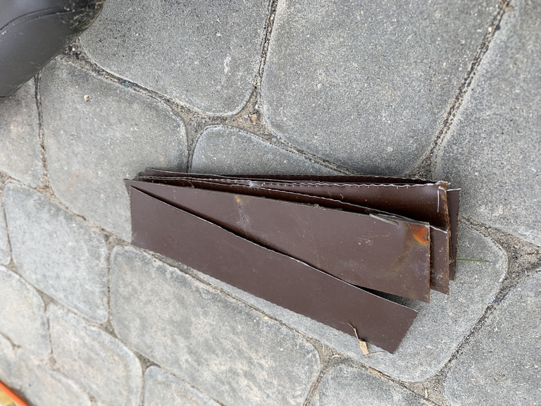 29. 08 мая 23 года. Нарезаю из остатков забора (0.45 мм) пластины для точного выставления стаканов.