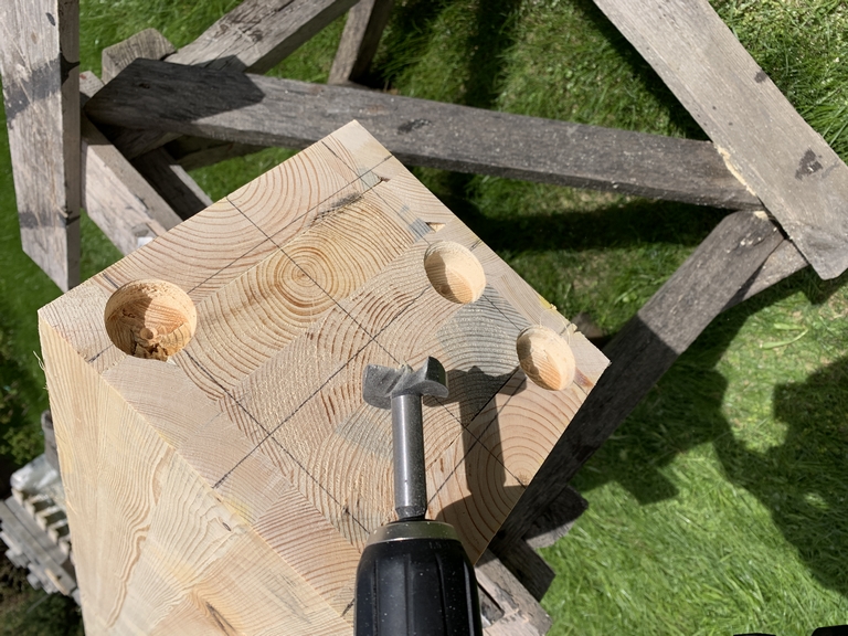 36. 09 мая 23 года. Сверлом форстнера выбираю места под болты.