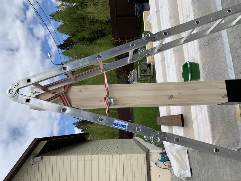 37. 09 мая 23 года. Примерка первого столба и глупейшая ошибка. )) Столб в размере 200Х200, внутренний размер стакана 200х200. Но зашел то хорошо, а обратно хуй. Зазора то нет никакого. Его там и закусило. А весит он будь здоров.