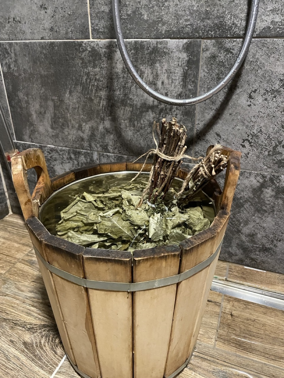 Веники, как затопил баню, на час замачиваю в холодной воде, потом заворачиваю в пакет и в парную. Они там за два часа, пока баня выходит на рабочий режим, доходят до нужной кондиции. Данный метод отличается от метода запаривания в кипятке тем, что всё полезное не остаётся в кадке, в виде крепкого “чая”, а сохраняется в листе