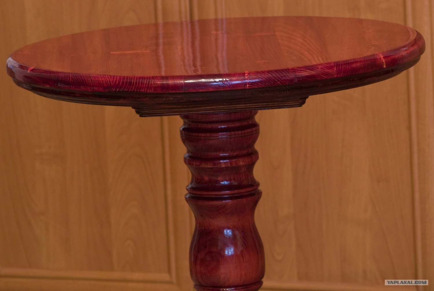 У нас делают такие же, но ножки выпиливают из доски, а не из фанеры. Может быть держит и хуже, но текстура дерева видна со всех сторон. И сломанных ножек еще не видел.