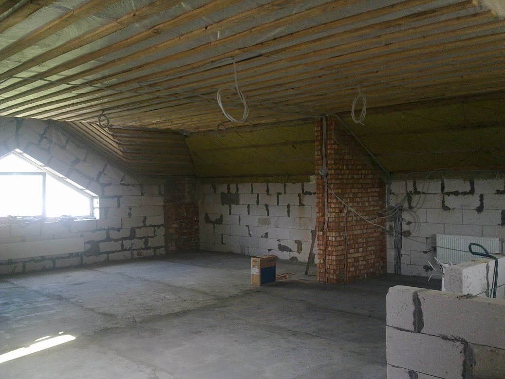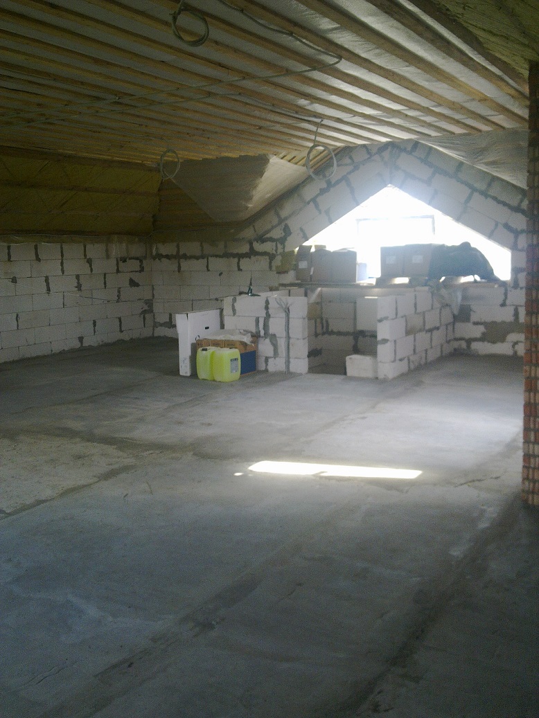 12 мая 2013 года, залили черновой пол на мансарде. Я сам любитель хорошего инструмента, для узбеков купил лазерный уровень, такого типа http://bosch.vseinstrumenti.ru/instrument/...oxx_0601063205/ правда тогда он стоил около 17 килорублей. Классная вещь для работы, мне, правда , пришлось учить узбеков, как им пользоваться, но зато увеличивалась скорость работы и качество, можно было за полчаса выставить уровень полов на площади 100 квадратов, а уж про скорость выставления маячков для штукатурки я не говорю. Исчезла необходимость в покупке трехметровых правил для этих целей. Для выравнивания обходились полутора и двухметровыми.