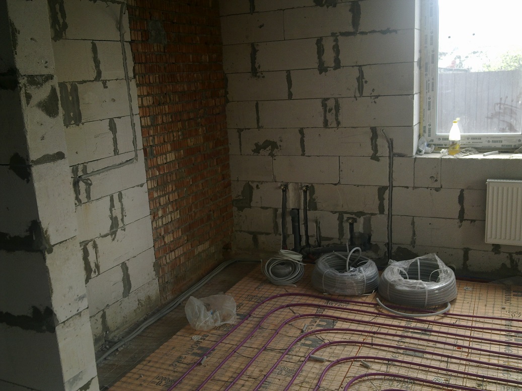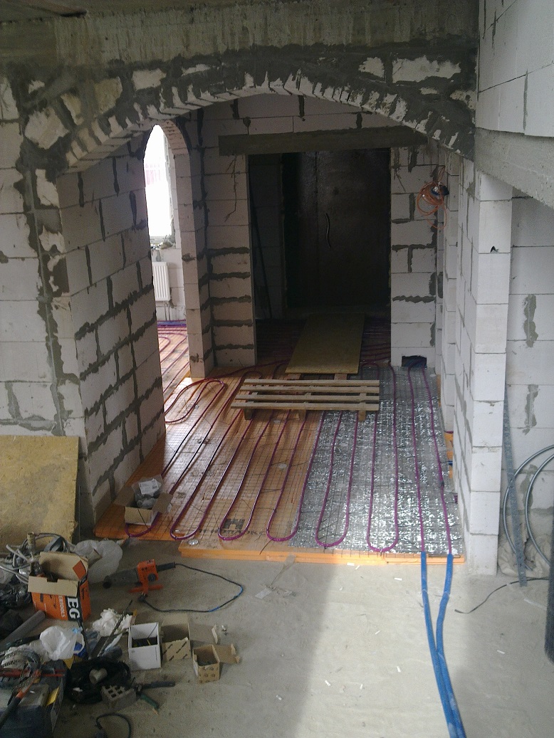 По прошествии времени, я пришел к выводу, что надо было на всех этажах положить теплые полы и отказаться от батарей отопления. Я про это читал ранее, но не верил, мне казалось, что в нашем климате они не могут работать так же эффективно. Но практика показала, что на первом этаже у меня по факту включена только одна батарея, на втором этаже по одной батарее в спальнях, в ванных комнатах и туалетах батареи отключены, кроме того, приятно по теплому полу ходить босиком. Еще одним плюсом теплых полов в ванных комнатах я является то, что все брызги и лужицы быстро исчезают.