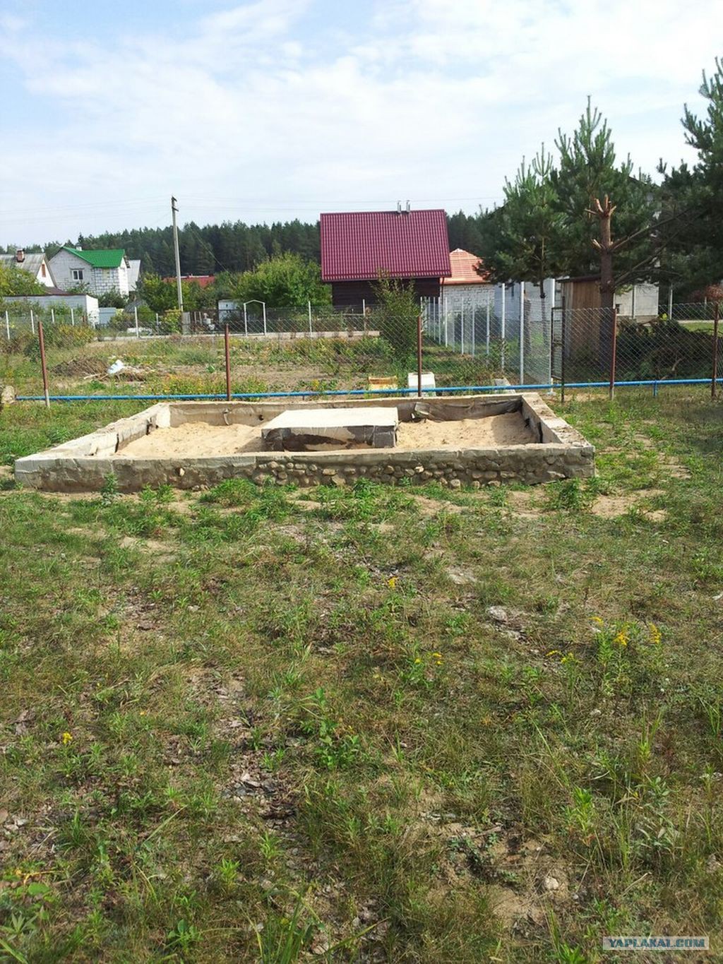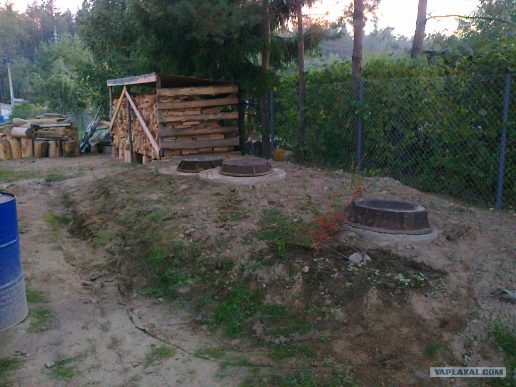 Трубы канализации закопались не ровно и не до конца. Сглаживаю это насыпанием курганчика, потом засажу, за зеленью и цветами видно не будет.