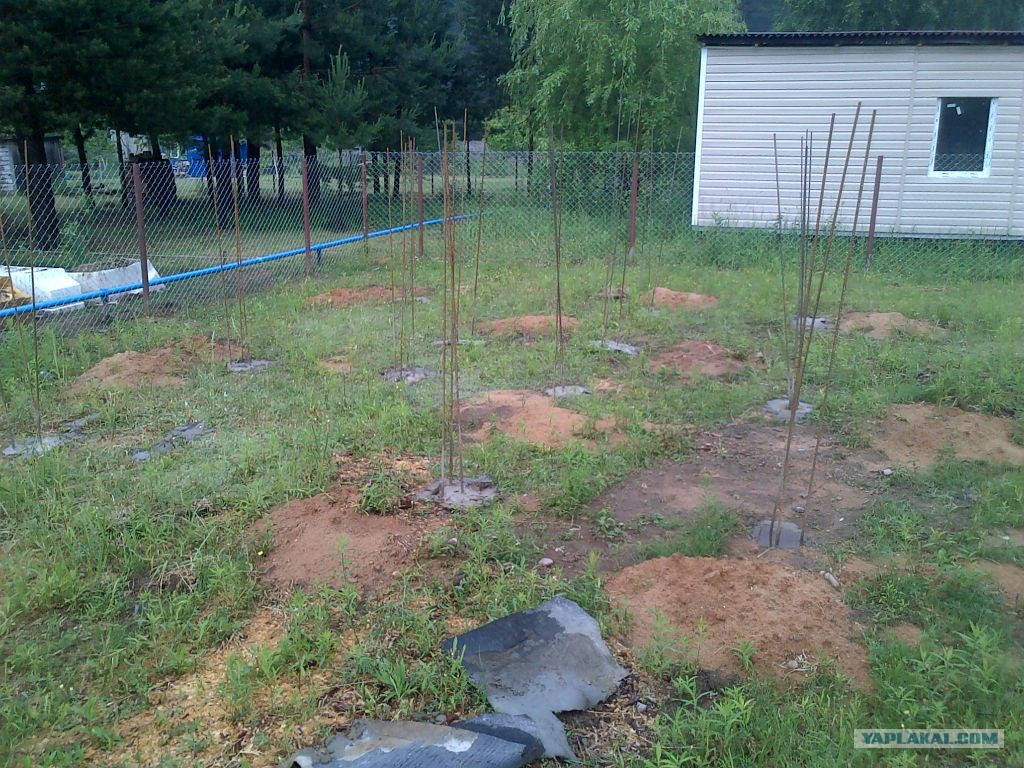 Плиты лежат на слое рубероида. В первую очередь это сарай, а позже будем видеть, как финансы позволят.