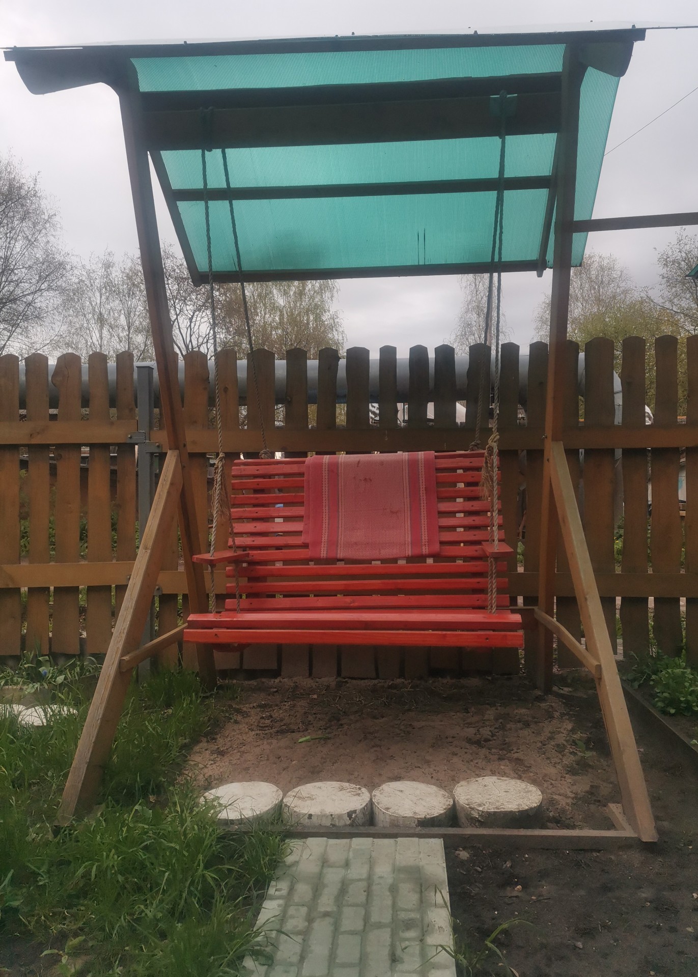 следовало поддоны разобрать на доски и сделать уже нормально. а так - не лавка, а тупо на кучу сложенных и зачем-то покрашенных поддонов похоже.