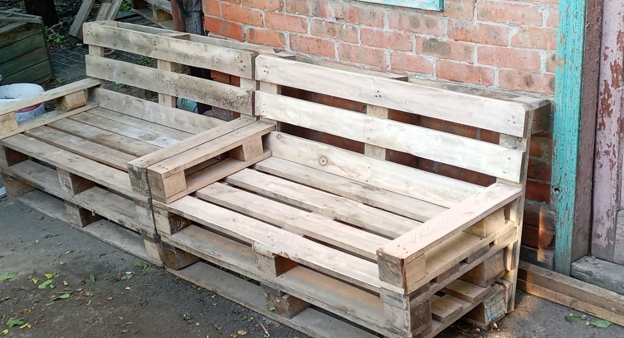 поддоны крепили между собой, плюс спинку одной скамье прикрутили