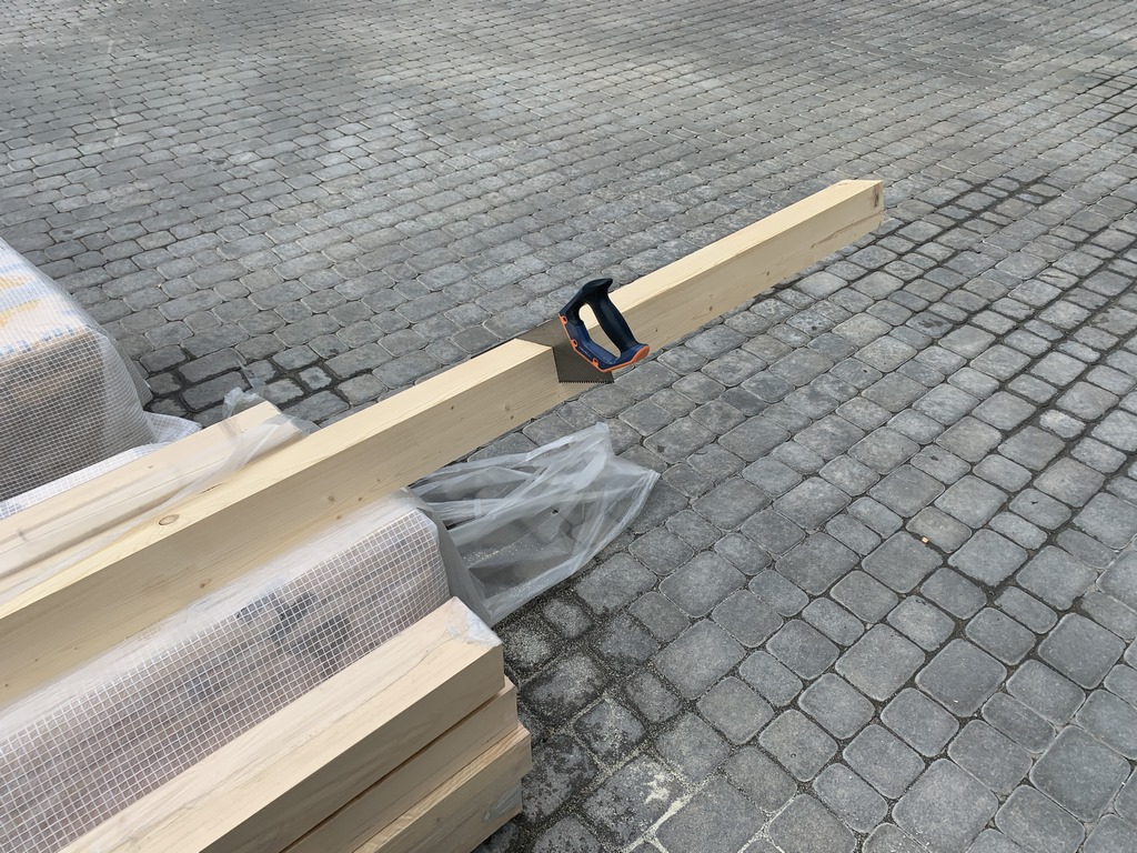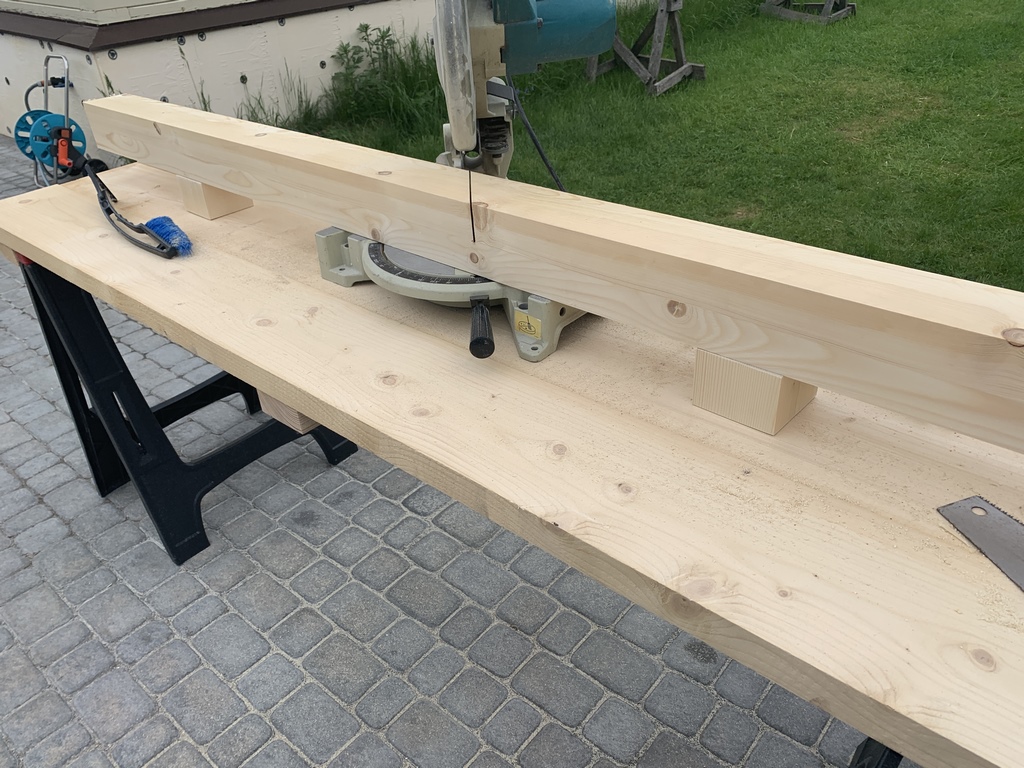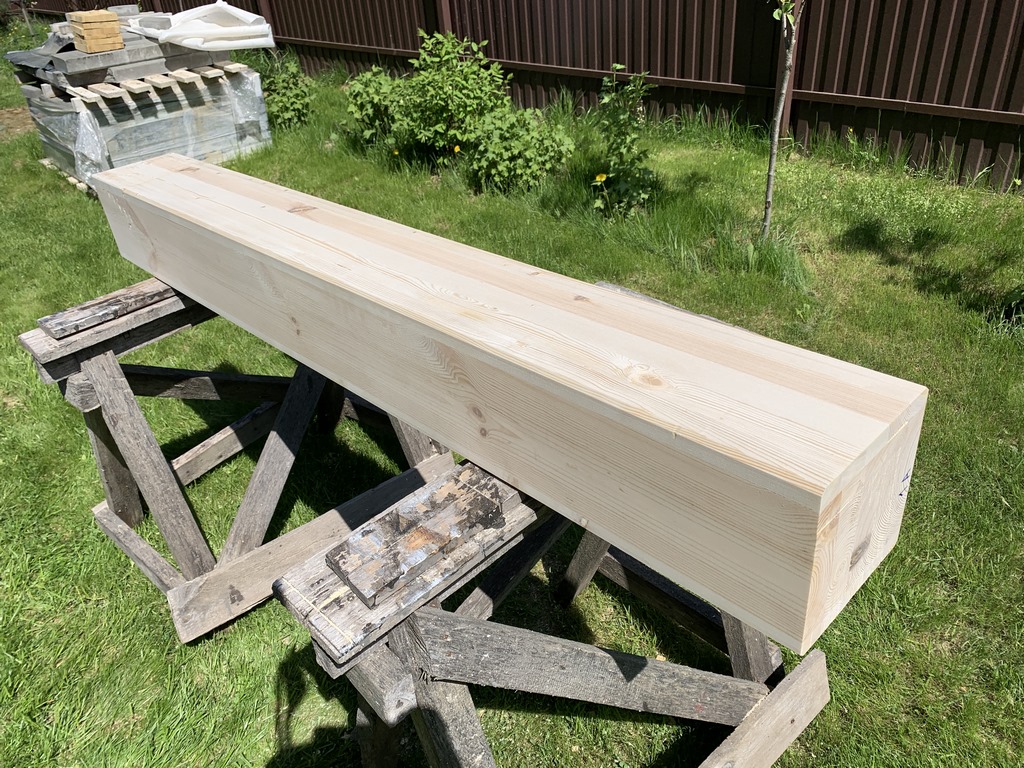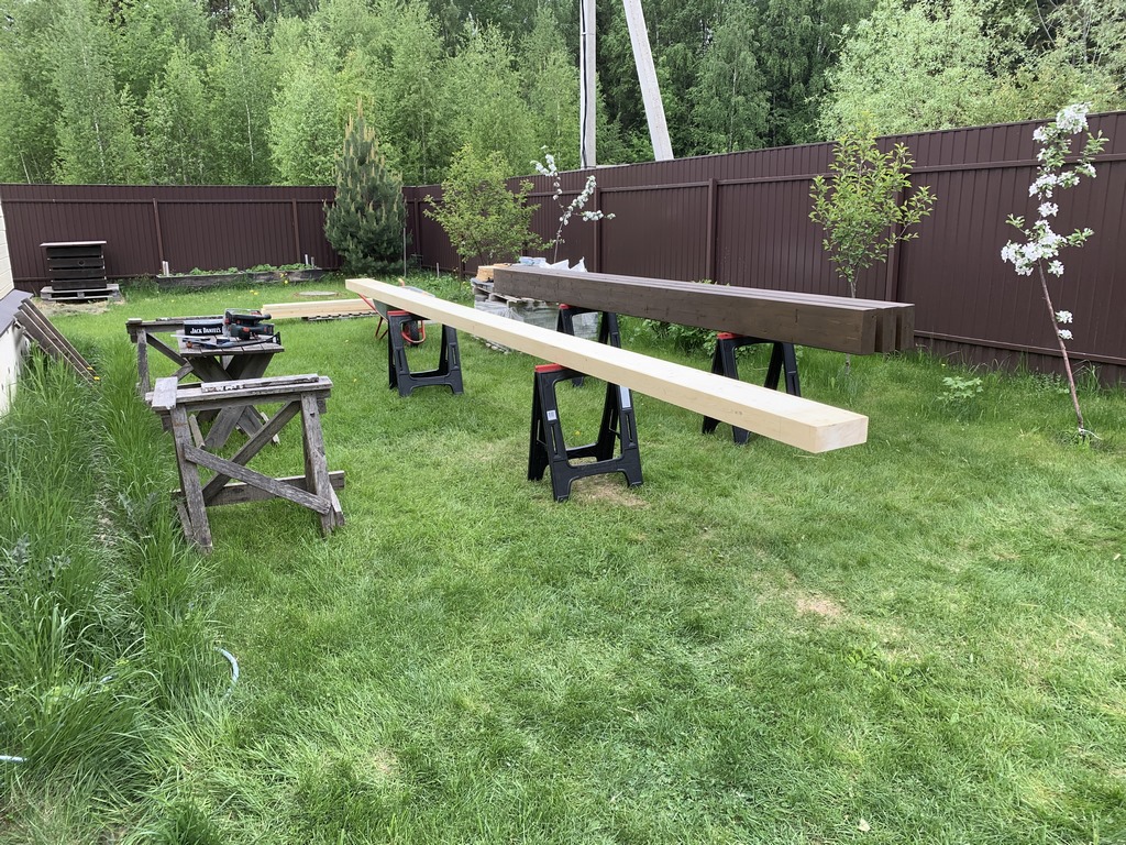 72. 24 мая 23 года. Когда оставалось пару метров бруса, тогда уже можно и под торцовку положить.