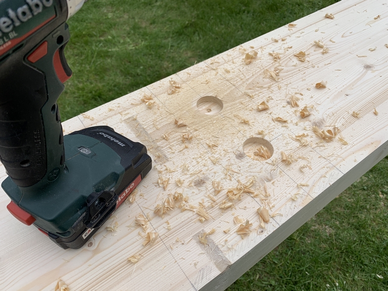 63. 20 мая 2023 года. Сверлим. Сначала форстнера, потом сверлом 10-кой.