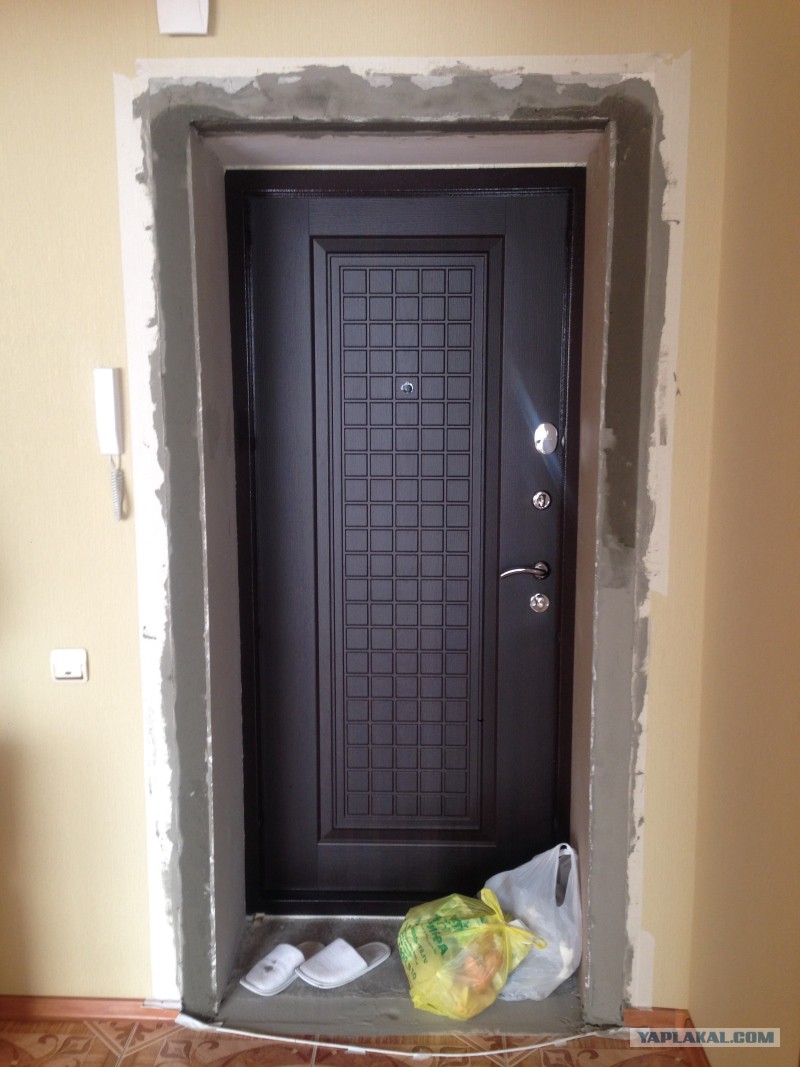 В общем дела обстояли так, была перенесена входная дверь чуть дальше, в результате чего откосы получились, мягко сказать, "некультурные"