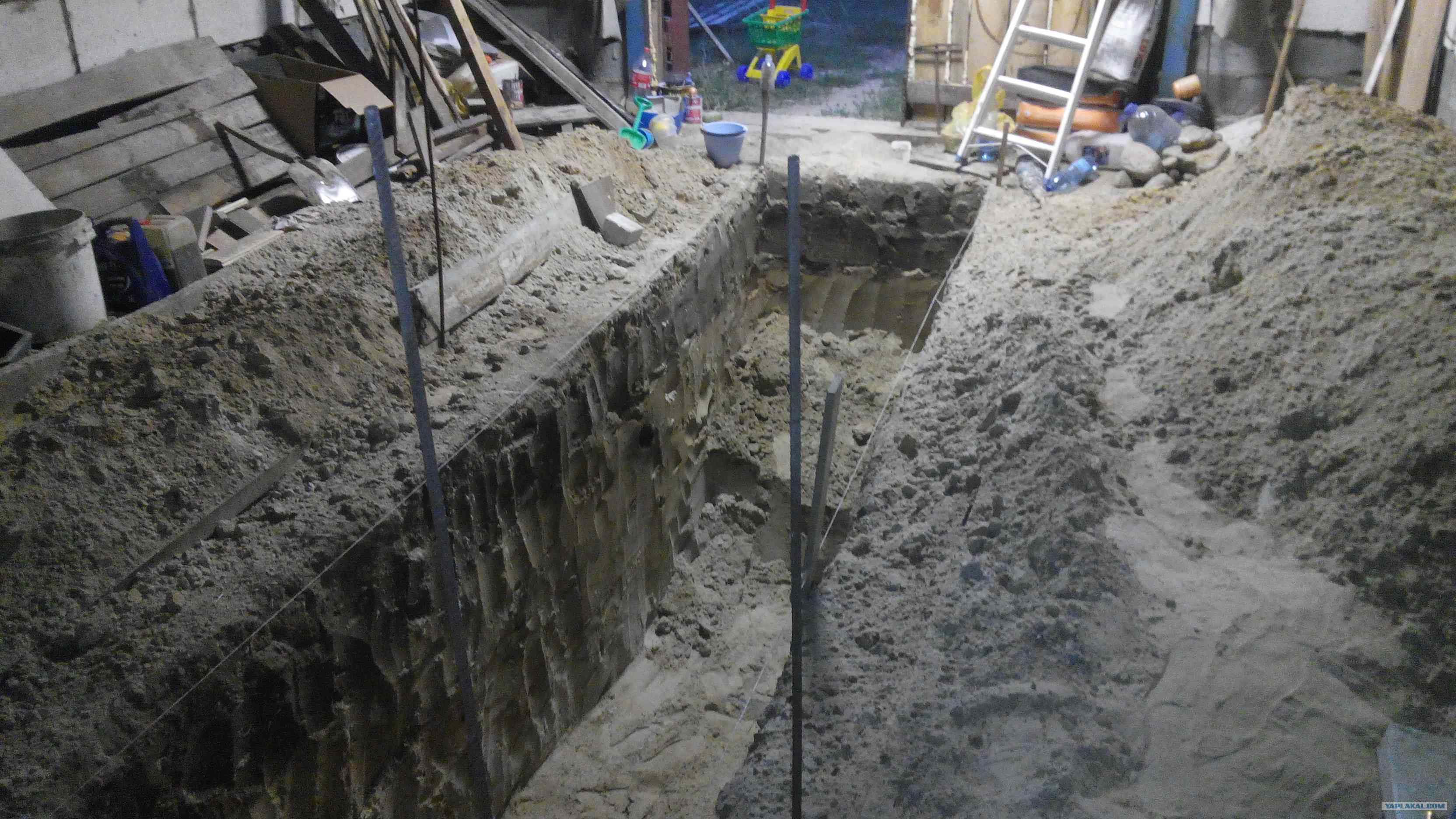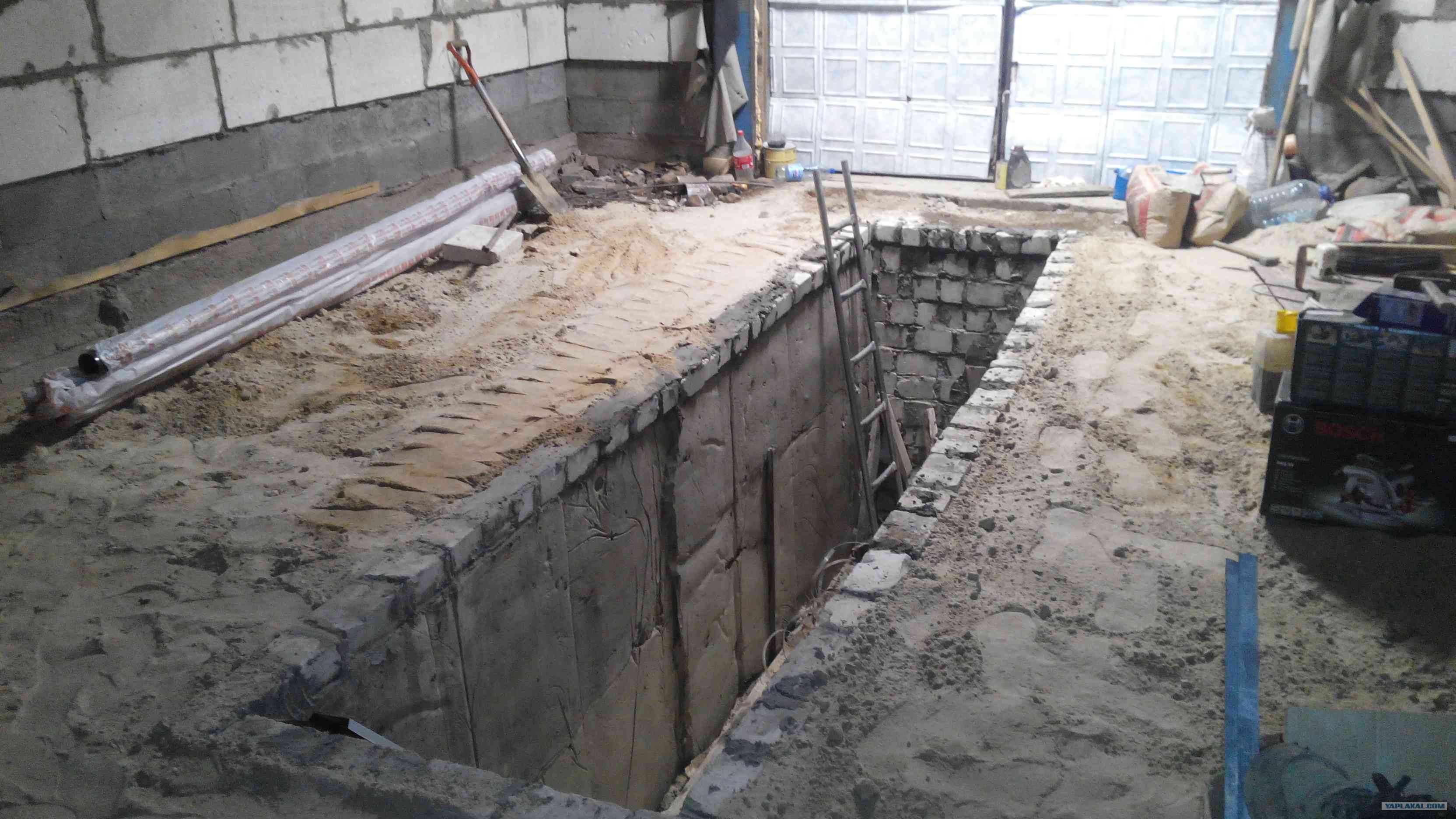 В гараже была свалка материалов, всевозможного иструмента и прочего нужного иногда хлама, его разнес вдоль стен, инструмент перенес на временное хранение в сарай и понеслась. Начинается все с разметки будущей ямы: