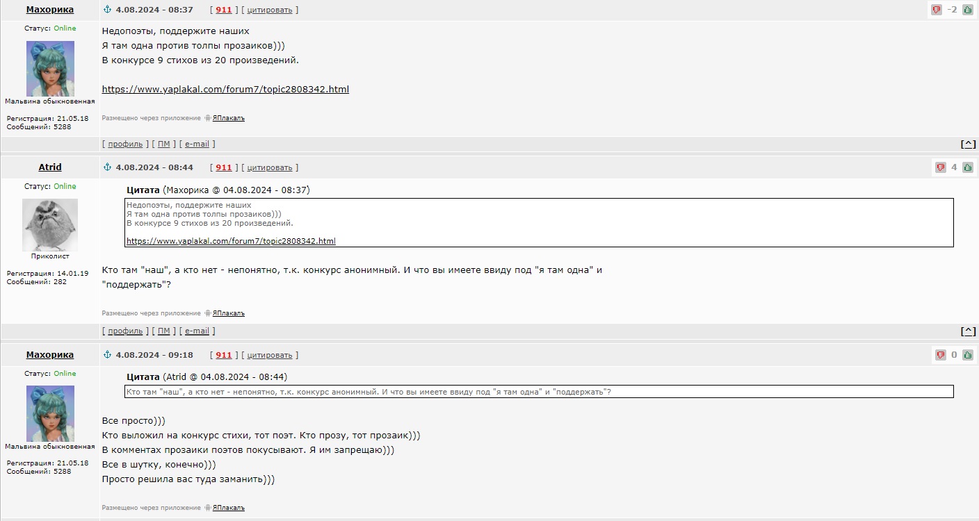Тему и конкурс сделали рассказы и стихотворения. Тебе интересно было читать флудильню, да ради бога. На этом и разойдемся.