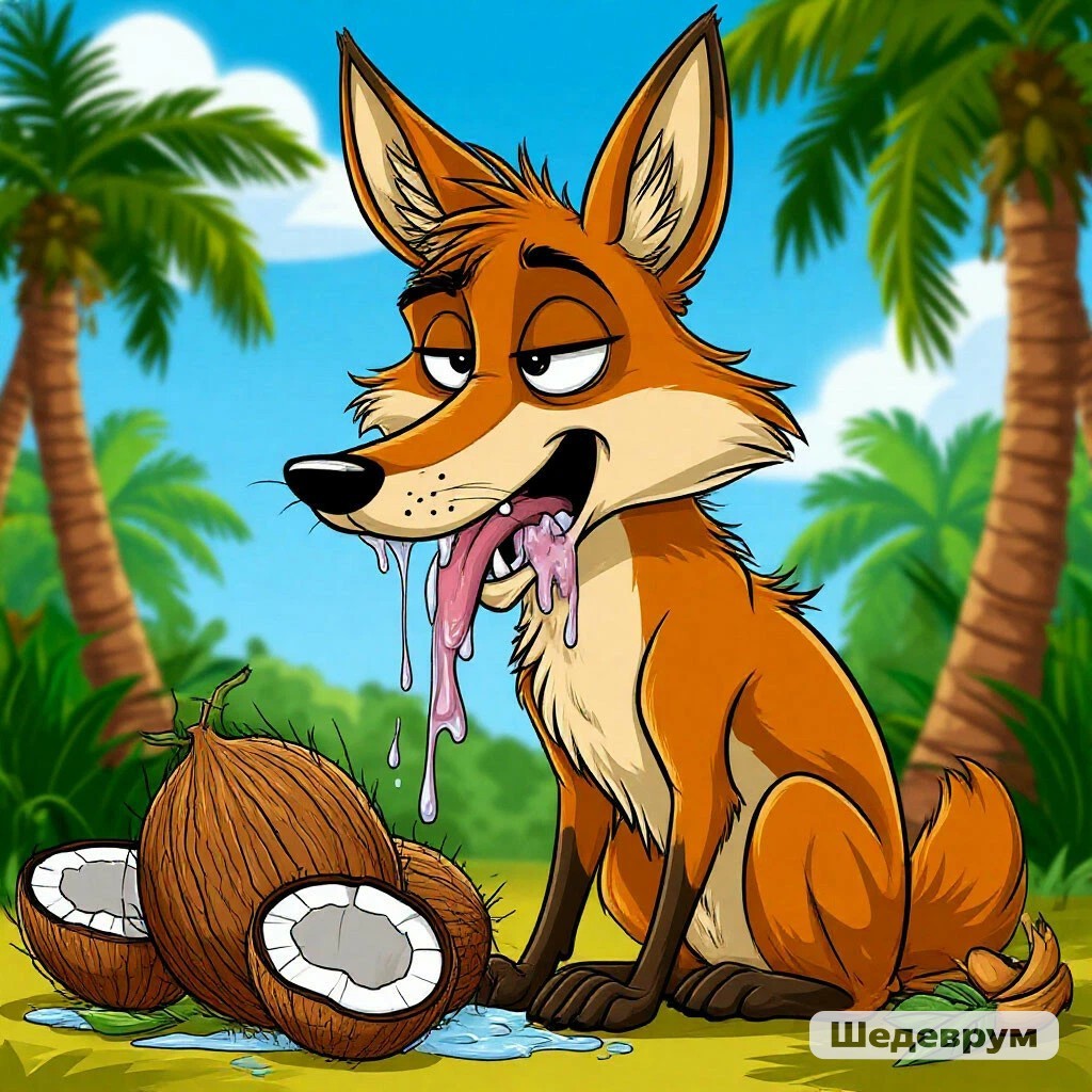 Полюбовавшись схватившимся за окровавленную пасть Волком Колобок, хихикая, покатился дальше - кокосов у него для всех хватало.