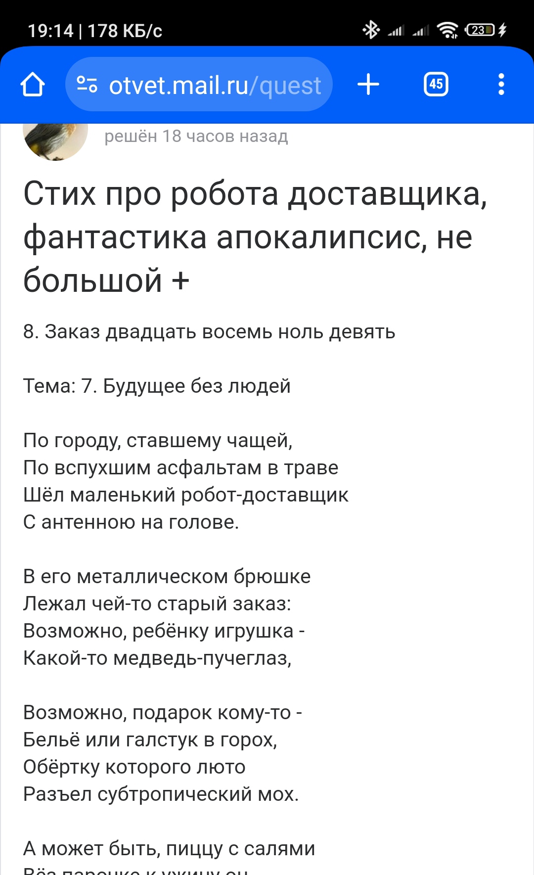 Какое-то "исчадие добра" выложило это стихотворение на мейл.ру.
