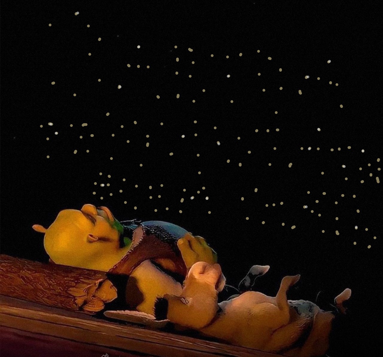 Осел угомонился и тихо похрапывал, иногда перебирая копытами, будто убегая от кого-то. А вот Шреку не спалось. Он смотрел в звездное небо и пытался считать эти перемигивающиеся огоньки. Одна звезда, две звезды, три звезды... И тут он заметил, что звезды складываются в надпись. А ты, дружок, сможешь вместе со Шреком прочитать звездное послание?