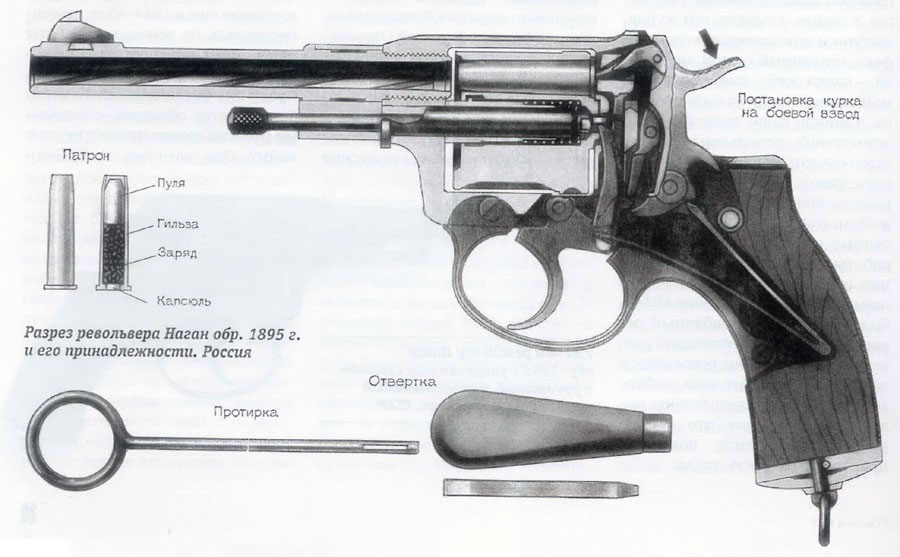 Стрелять из него не доводилось, но сколь помню по "Книжной информации", патрон нагана... Короче, действительно частью патронника, является ствол, чем достигается максимальная обтюрация, но из барабана патрон не торчит, как можно было-бы предположить.