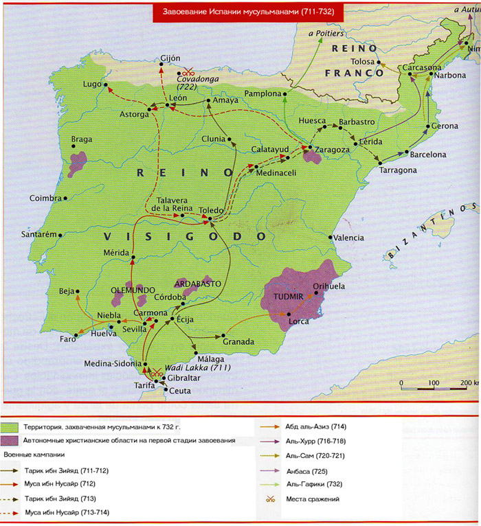 Арабское завоевание Пиренейского полуострова произошло за довольно короткий период 711—718 годов
