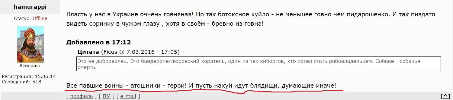 Мне особенно нравится подпись у Хамураппи, что мол сайт ЯПлакал тоже виноват во вражде украинцев и русских. А то что он тут сука продажная провоцировал и смеялся над погибшими на Донбассе он уже позабыл видимо! А каратели из АТО, убивавшие людей - для него герои!