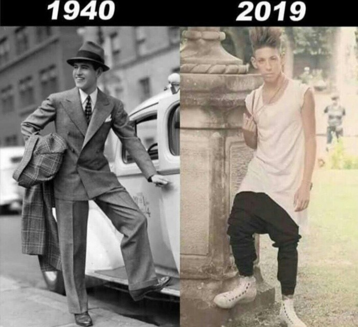 Если судить по одежке, то раньше люди были психически более здоровы. Ладно там дырявые штаны носить, но их еще и покупают дороже, чем обычные faceoff.gif
