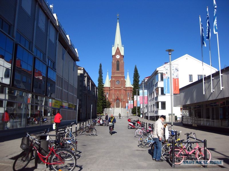 Центр Миккели, утро , около 9 часов. Покатались на велике, посидели на воздухе в кафешке на центральной площади, кофе, пончики... Пиво в таких кафешках не продают априори, продавцы улыбаются, здороваются, шутят. Непривычно. Катаюсь регулярно, душа отдыхает от таких поездок. Кто минусует или "патриот" - попробуй, скатайся, сам поймешь что имел ввиду ТС.