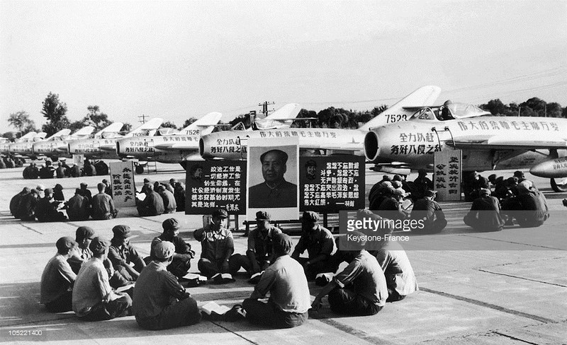 Лётчики одной из китайских авиационных частей во время занятий по политподготовке; август 1968-го года