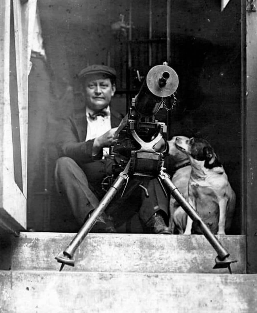 На фото мужчина на крыльце своего дома ожидает подхода банд взбунтовавшихся негров, во время событий, названных впоследствии "Чикагские гонки".