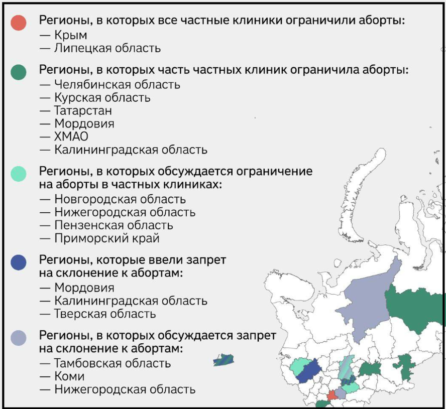 Уже начали принимать региональные законы о запрете пропаганды абортов. Под эту лавочку, например, запретят делать в частных клиниках, а в государственных сделают очередь на пол года.