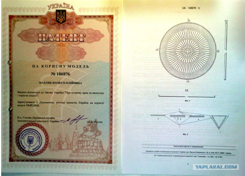 Вот патент Олейника на вечный двигатель