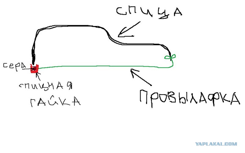 Два болта и по середине гайка, кто знает??? Спица от велика?? А какой чудесный феерверк был из пакета серебрянки с добавлением марганцовки