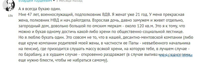 Хотя, с другой стороны, может у него, как у героя видео Гайдука "Регулярная шизофрения", несколько личностей, и одна из них вполне себе может быть бухающим в одиночку экономистом, служившим в ВДВ, и из успешной семьи. А то, что остальные личности тоже воинственные особы, даже удобно - тельняшечку переодевать не приходится gigi.gif