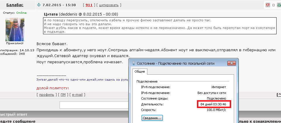 У моего провайдера раньше была нормальная местная ТП, с адекватными и образованными мальчиками и девочками на том конце провода. Потом номер ТП поменялся на всероссийский 8-800-775-0-775 и на том конце провода повесились тупенькие мальчики и девочки работающие по бумажке. За все свои 15 лет в интернете я более тупорылой технической поддержки нигде не видел faceoff.gif