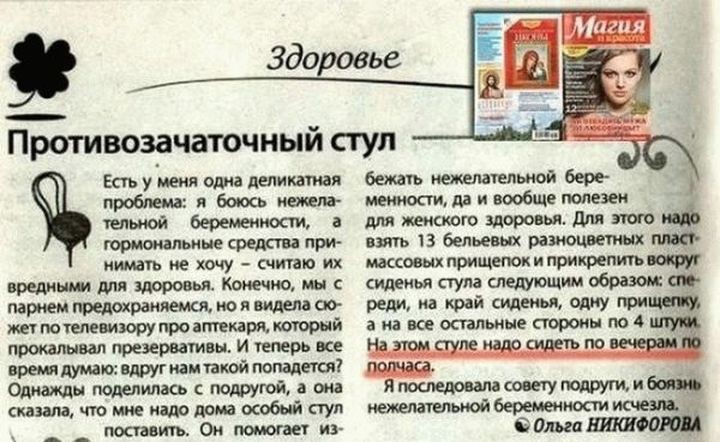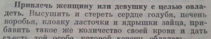 Не совсем детская страшилк, но треш пиздецовый. Иногда наша народная мудрость способна сразить наповал своим юмором, оригинальностью и полетом мысли. Что уж говорить о советах и рецептах, прочтя которые задумываешься об адекватности авторов. Особенно доставило средство от поноса...