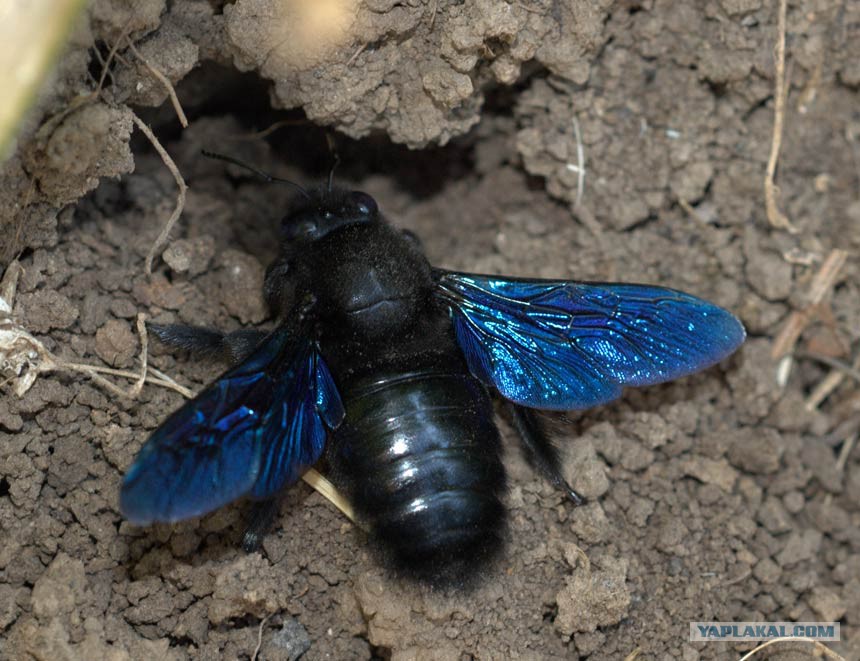 А есть ещё вот такая зверуха, называется пчела-плотник. Здоровая такая, на мухенцию похожая, у нас проживает на участке. Я думал муха какая, гипертрофированная, ан нет, пчёл. Здоровая лошадь, сантиметра два с половиной в длину.