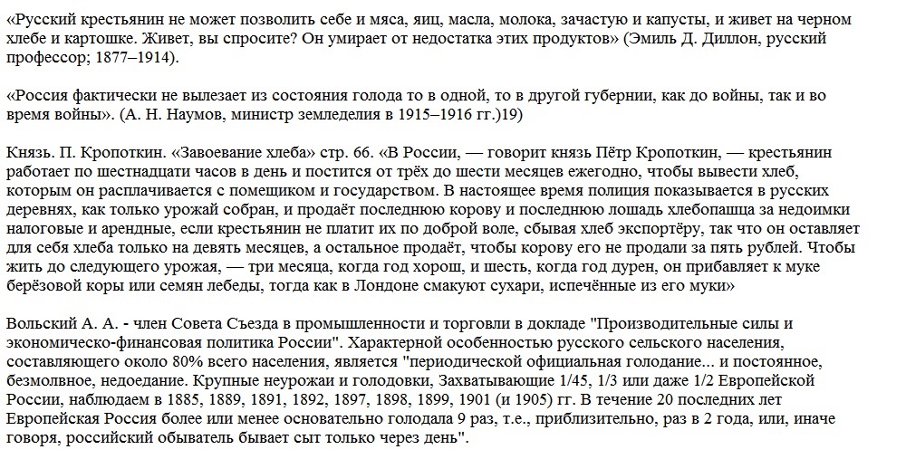 Странно, о каком голоде писал Лев Николаевич? Мы ведь по телевизору от разных гнид, ой, простите, российских чиновников, непрерывно слышим, что Российская империя - это просто Валинор на земле, утерянный и обретённый рай. Наверное, это все ложь и поклёп и вообще фейк.
