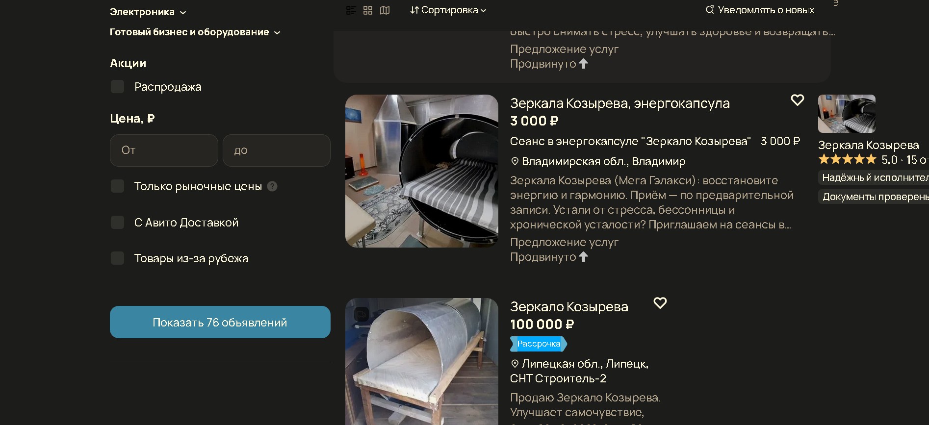 А зеркала Козырева я вспомнил как посещал такое, стоило тогда 500 рублей, с оговоркой что: "вы может ничего и не увидите. " Ну собственно вместо 10 минут я просидел с час. Потом попросил полежать в таком же цилиндре и уснул. И нифига.