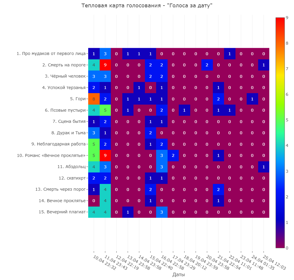 И вот такая "грусть-тоска" по голосам за даты (использован один из предустановленных градиентов инструмента).
