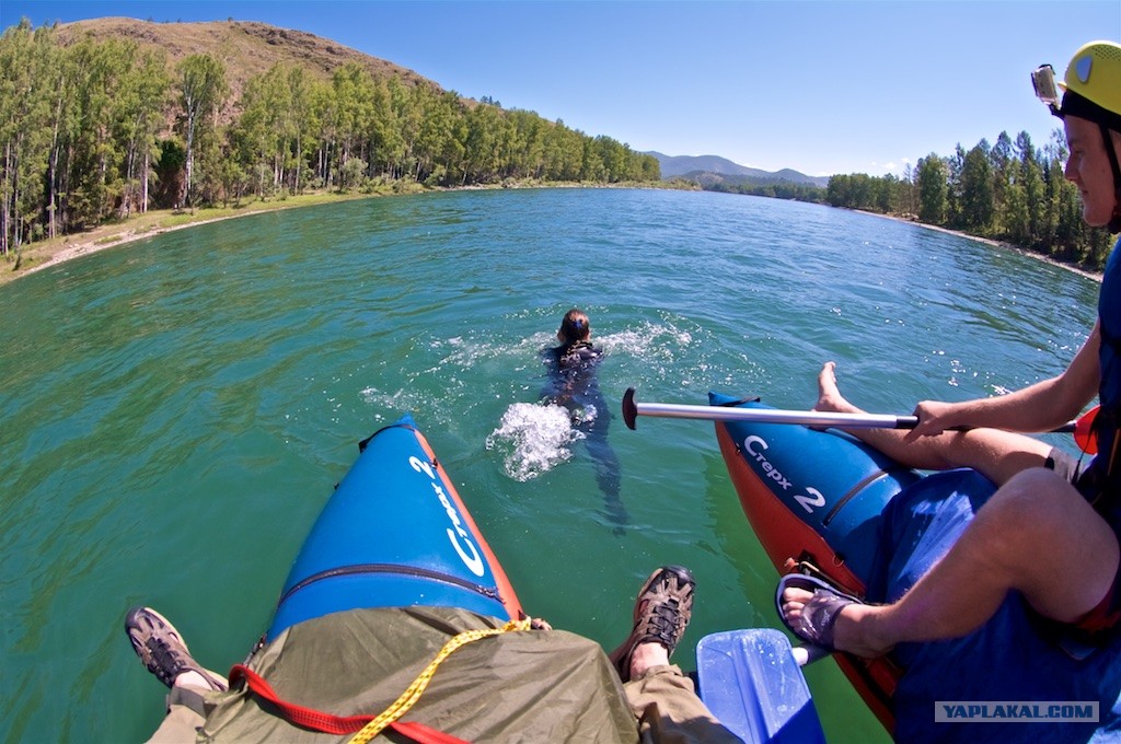 Мы с девушкой Олей сидели в аэропорту, потом летели, потом ехали, потом грузили походные вещи и снова ехали. За сутки пути я пришел в себя один раз — когда на стоянке под Горно-Алтайском набивал рот блинчиками с земляникой.