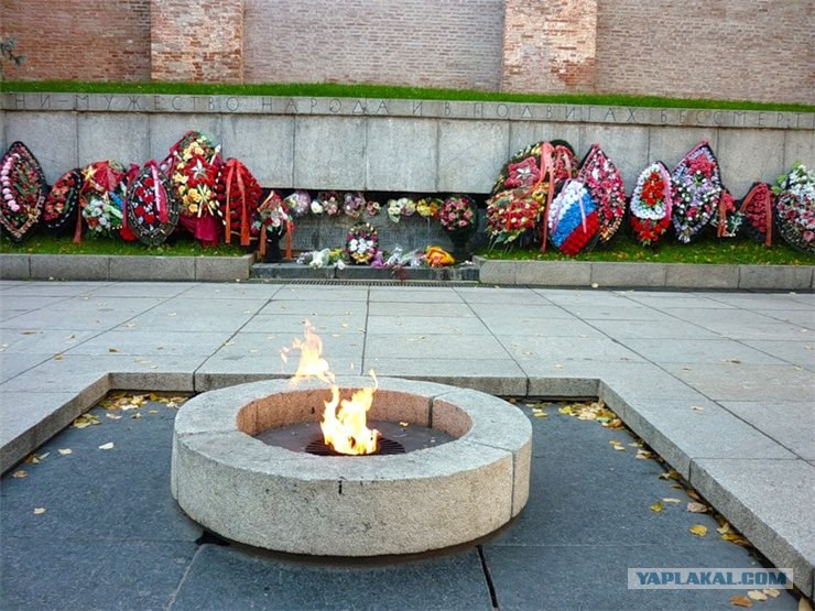 P.S. СССР (Россия). Новгород (Великий). Первым в СССР воинским мемориалом с Вечным Огнем стал мемориал «Вечный огонь славы» в Новгородском Кремле, открытый 8 мая 1965 года.